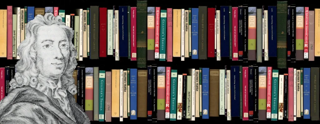 1727: anoniem [Dr. Cornelis van Blankesteijn]; 1792: anoniem; 1862: J.W.N. Mosselmans; 1940: G. Blom; 1974: Mr. S[em] Davids; 1979: Arjaan van Nimwegen; 2004: Paul Syrier. Zie ook blog 565 en 566 voor een inleiding op deze serie vertaalproblemen. Illustratie: Lemuel Gulliver in zijn bibliotheek, voor de wand met uitgaven van en over zijn lotgevallen. Een doorlopend bijgewerkt register op alle VandaagsVertaalProblemen staat in blog 345.