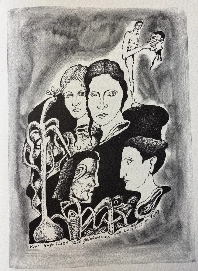 Lucebert leverde zijn tekening vlak voor zijn overlijden op 10 mei 1994 en zijn bijdrage is wellicht de laatst gepubliceerde tekening die hij maakte. De verschijning van Hugo Claus 65 mocht hij niet meer meemaken.