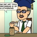 De Taalprof past zijn zojuist getoetste leesvaardigheid toe op het etiket van een een pot pindakaas … [Lees meer...] overNeerlandistiek-cartoon #6