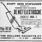 Achter het Achtervoegsel 60 In juli 2022 plaatste ik op Neerlandistiek een bijdrage over stofzuigers waarvan de naam eindigde op -ette (AhA 19). Aan bod kwamen de Dustette, de AEG Vampyrette, de Hooverette en de Rutonnette. Met dat stuk dacht ik alle stofzuigernamen op -ette keurig bij elkaar te hebben geplaatst. Maar de continue jacht naar -ette-woorden op Delpher leerde … [Lees meer...] overVacuette: voor stof- en bloedzuigers