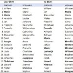 Voornamendrift (41) Door Gerrit Bloothooft De adel kiest voornamen die deels traditioneel zijn en deels modenamen van een bredere elite. Echt herkennen doe je de adel niet aan de eerder besproken top-voornamen. Maar er zijn wel minder frequente voornamen waarbij de kans relatief groot is dat de drager van adel is. We selecteerden de voornamen die minstens 10 keer … [Lees meer...] overSpecifiek adellijke voornamen