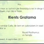 Variatie in familieberichten Door Siemon Reker In de familieberichten treffen we drie dingen aan, als we afzien van de pootjes van een huisdier: altijd taal,soms een fotoen nog iets minder vaak een symbool Een voorbeeld van dat laatste is een kruisteken (met name in advertenties uit R.K-sferen) of twee Griekse letters met elkaar verstrengeld in teksten uit … [Lees meer...] overOns pap en ós leef meuderke