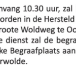 Door Siemon Reker Een goede bekende van me vertelde laatst dat ze zoveel fouten ziet in rouwadvertenties. Ik let daar te weinig op ook al ben ik ze wel tegengekomen in m’n speurtocht door familieberichten. Misschien staan ze minder in grotere regionale dagbladen waar ik vooral naar keek dan in uitgaven die een kleiner gebied bestrijken. … [Lees meer...] overFoutjes, vooral syntactische, in familieberichten