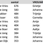 Voornamendrift 57 Door Gerrit Bloothooft 82% van alle Nederlanders heeft een unieke naam, als je tenminste alle voornamen en de achternaam gebruikt. Met alleen de eerste voornaam en de achternaam daalt dat percentage naar 46%. Op basis van alleen een naam kunnen we niet iedereen identificeren. Omdat ik naar analogie met de huidige basisregistratie personen graag een … [Lees meer...] overUniek zijn, voor een historische bevolkingsadministratie