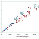 Voornamendrift (33) Door Gerrit Bloothooft In oktober publiceerde ik mijn voorspelling van de top-20 van voornamen in 2018 voor jongens en meisjes. Dat deed ik op basis van gegevens tot en met 2017 en een model dat beschrijft hoe de populariteit van een naam zich over de jaren ontwikkelt. Gisteren zijn de toplijstjes voor 2018 gepubliceerd door de Sociale … [Lees meer...] overHet voorspellen van voornamenlijstjes kent zijn grenzen