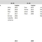 Voornamendrift (32) Door Gerrit Bloothooft Ook voor meisjes kan voorspeld worden wat de top-20 voor 2018 zal worden. Eigenlijk is het lijstje niet het belangrijkste. Wel wat de modellering van de populariteit leert over de processen van verspreiding en de rol van voortrekkers en sociale groepen daarbij. Hier is mijn lijst, met 2017 als … [Lees meer...] overTopnamen in 2018 voor meisjes voorspellen